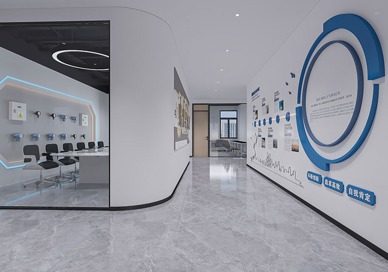 作為濟(jì)南辦公室裝修中產(chǎn)業(yè)園區(qū)辦公空間的代表,聯(lián)東 U 谷以科技為核心,弧形墻體柔化空間線條,淺灰大理石地面搭配嵌入式燈光營(yíng)造簡(jiǎn)潔質(zhì)感;一側(cè)展示墻整合品牌文化與產(chǎn)品信息,另一側(cè)玻璃隔斷的會(huì)議室嵌入科技感燈帶,適配企業(yè)產(chǎn)品展示與商務(wù)洽談,是濟(jì)南辦公室裝修中 “產(chǎn)業(yè)屬性 + 功能展示” 融合的優(yōu)質(zhì)案例。